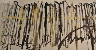 above: black ink , bleach and scratched with cocktail stick to create texture.